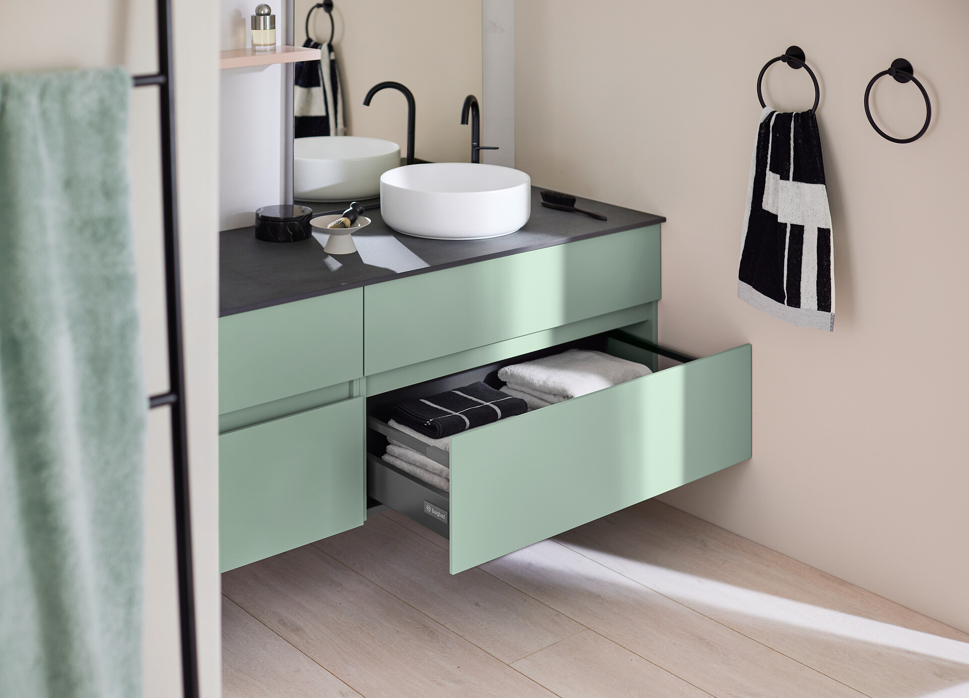 Grifflose Badmöbel, die Ergonomie und klares Design in sich vereinen